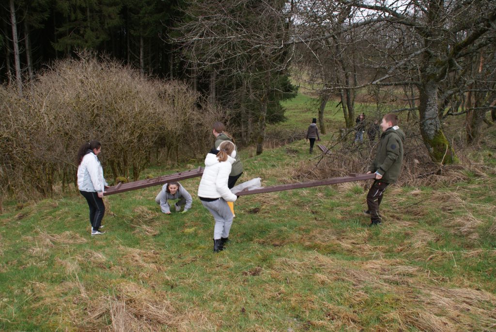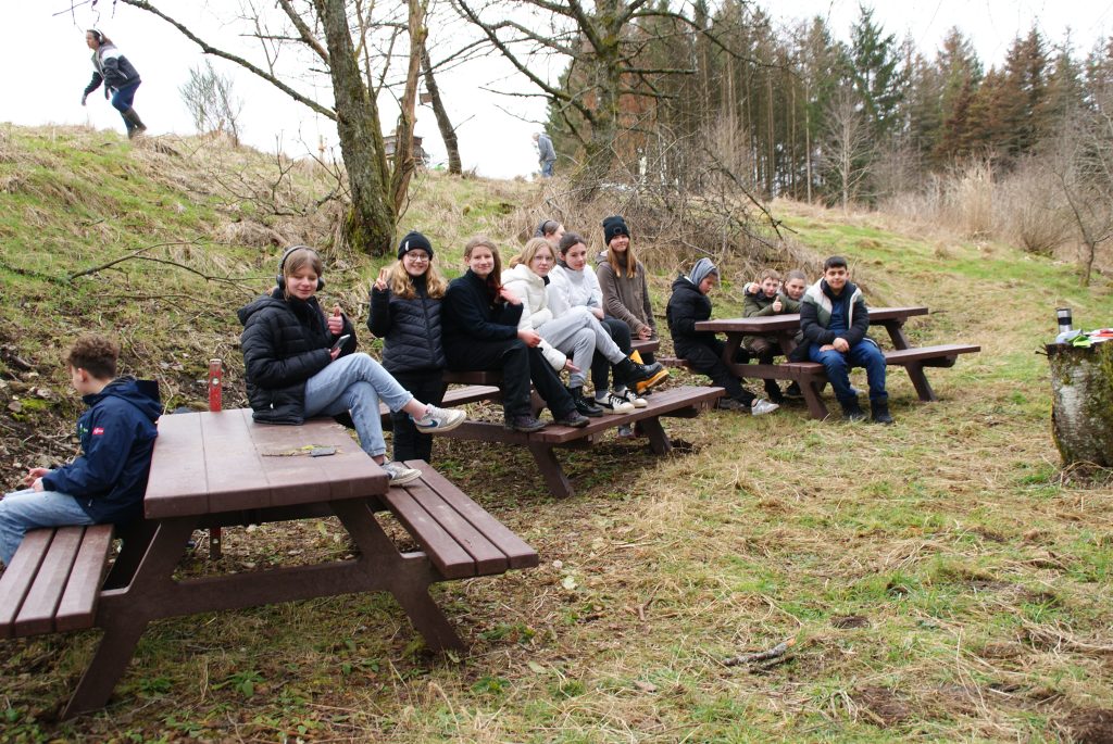 Dieses bietet insgesamt bis zu 24 Schüler*innen Platz und befindet sich in direkter Nähe der schuleigenen Streuobstwiese. Das Mobiliar, bestehend aus drei Sitzgruppen, ist aus widerstandsfähigem recyceltem Kunststoff und wurde durch das Team-Nachhaltigkeit der Schule, unter tatkräftiger Mithilfe von Herrn Klaus Marx vom Naturpark Saar-Hunsrück, aufgebaut.