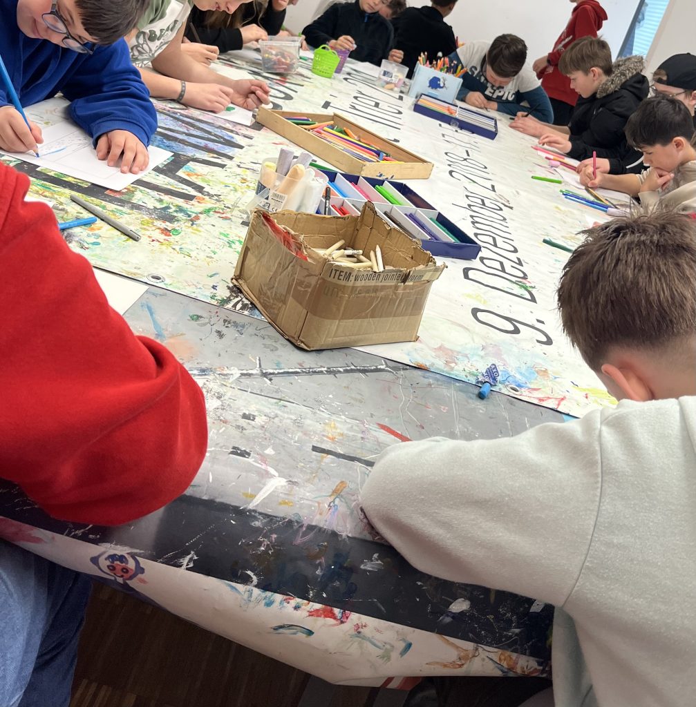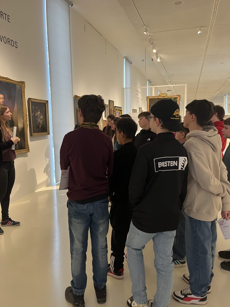 Mit dem Namen „Tell me more“ – Bilder erzählen uns Geschichten – entführt das Stadtmuseum Simeonstift Trier momentan seine Besucher in die Welt der Kunst und lädt zum Nachdenken ein. Welche Geschichten hinter diesen Werken stecken, untersuchte auch die Klasse 6c am Dienstag bei ihrem Ausflug dorthin. Gemeinsam mit Frau Wichmann und Frau Sander erfuhren die Schülerinnen und Schüler einiges über Maltechniken und die Künstler, die die Bilder erschaffen haben. Anschließend durften sie in einem kleinen Kunstworkshop selbst verschiedene Maltechniken ausprobieren.