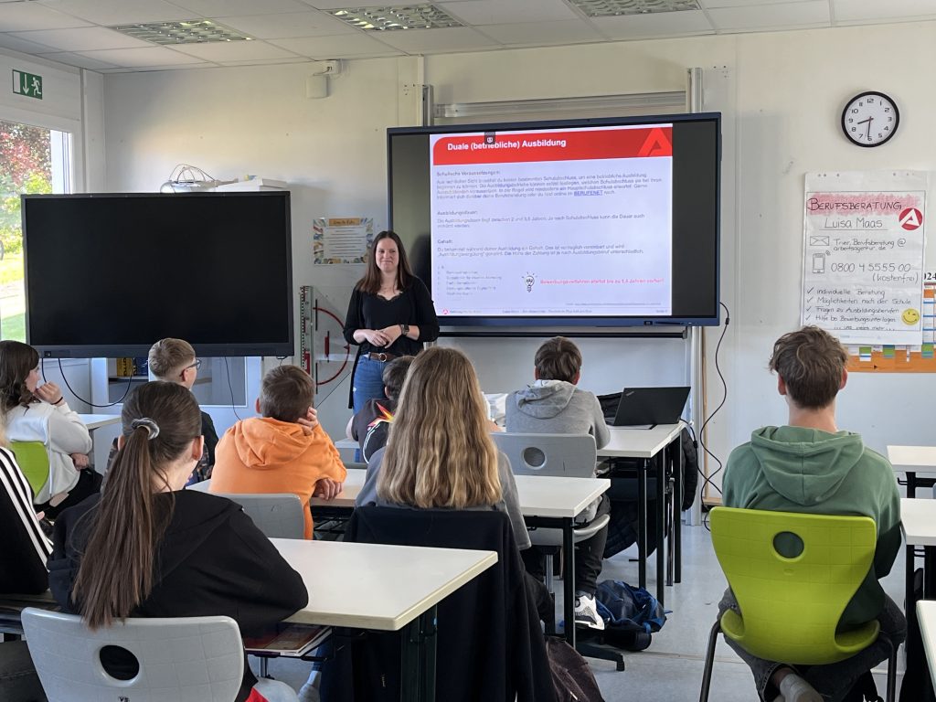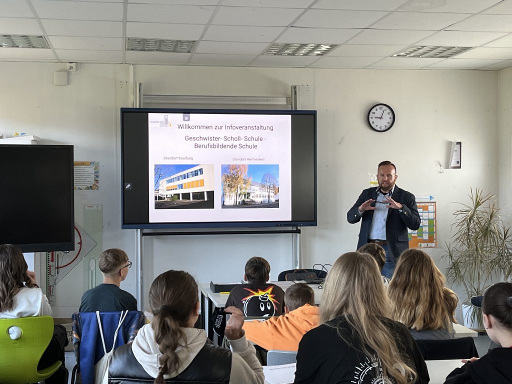 Zu Beginn wurden die drei Klassen durch unsere neue Berufsberaterin Frau Maas und den kom. Leiter der BBS Hermeskeil, Herr Schulze, über das duale Ausbildungssystem und die Möglichkeiten der schulischen Bildung an einer Berufsbildenden Schule informiert.