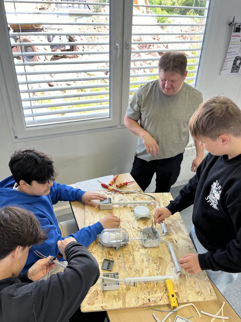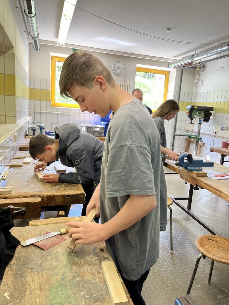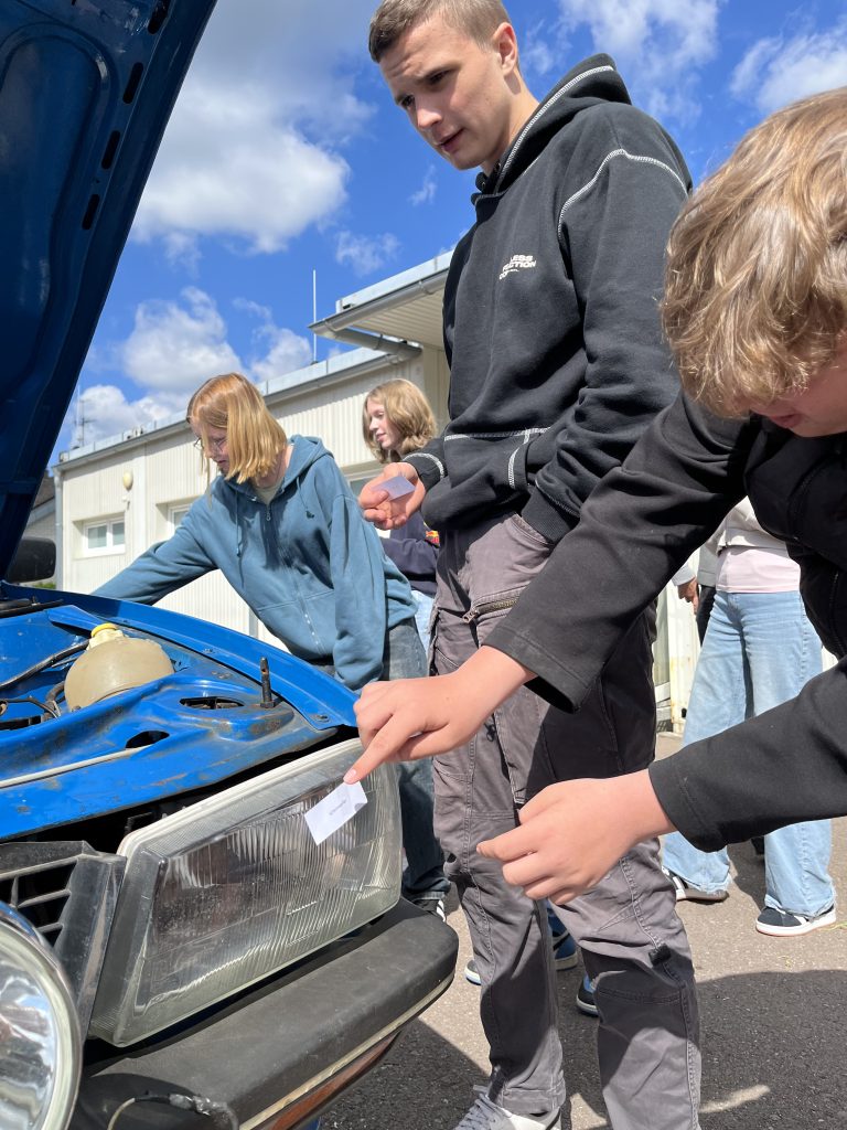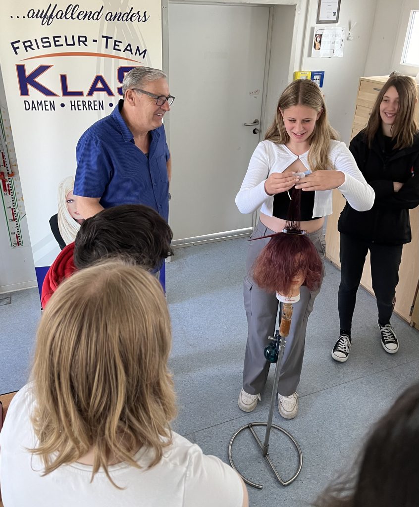 Anschließend ging es in die Workshops, die von ortsansässigen und regionalen Betrieben angeboten wurden. Vorab hatten unsere Schülerinnen und Schüler die Möglickeit, sich nach ihren Interessen und Neigungen für folgende Berufsfelder und zwei entsprechende Workshops anzumelden: Bank- und Finanzwesen (Sparkasse Trier), Verwaltungsbereich (Kreisverwaltung Trier-Saarburg), Einzelhandel (Rewe), Pflegebereich (Haus Mühlberg), Elektrik (Elektro Lehnen), Mechatronik (Komage), Friseur (Friseurteam Klas), Maler und Lackierer (Maler Backes), Metallbau (Metall-Innung Trier-Saarburg), KFZ-Mechatronik (Beiling Classic Automobile), Schreiner (BBS GuT Trier) und IT-Bereich (Herr Binkle).