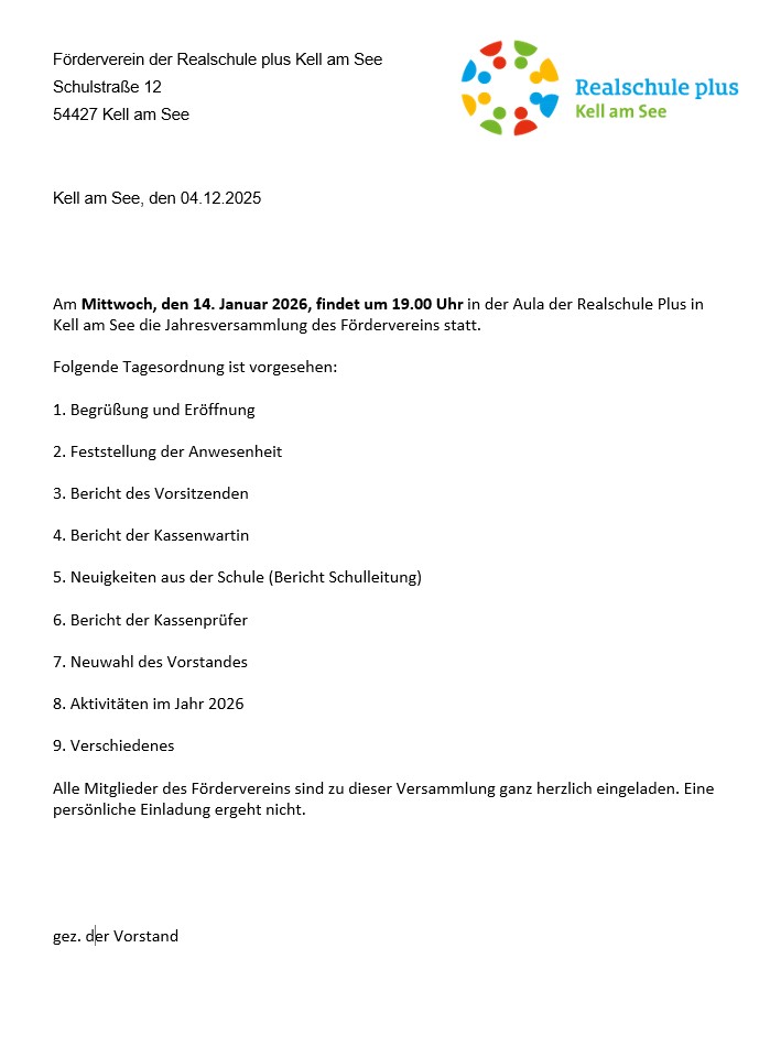 Jahresversammlung des Fördervereins am 14.01.2026